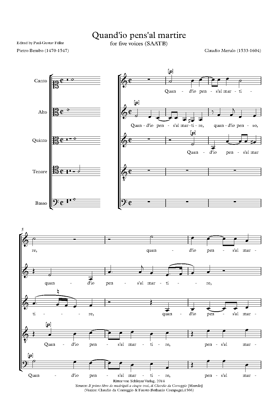 | First Publication | 1566 in Madrigali a 5 voci, Libro 1 |