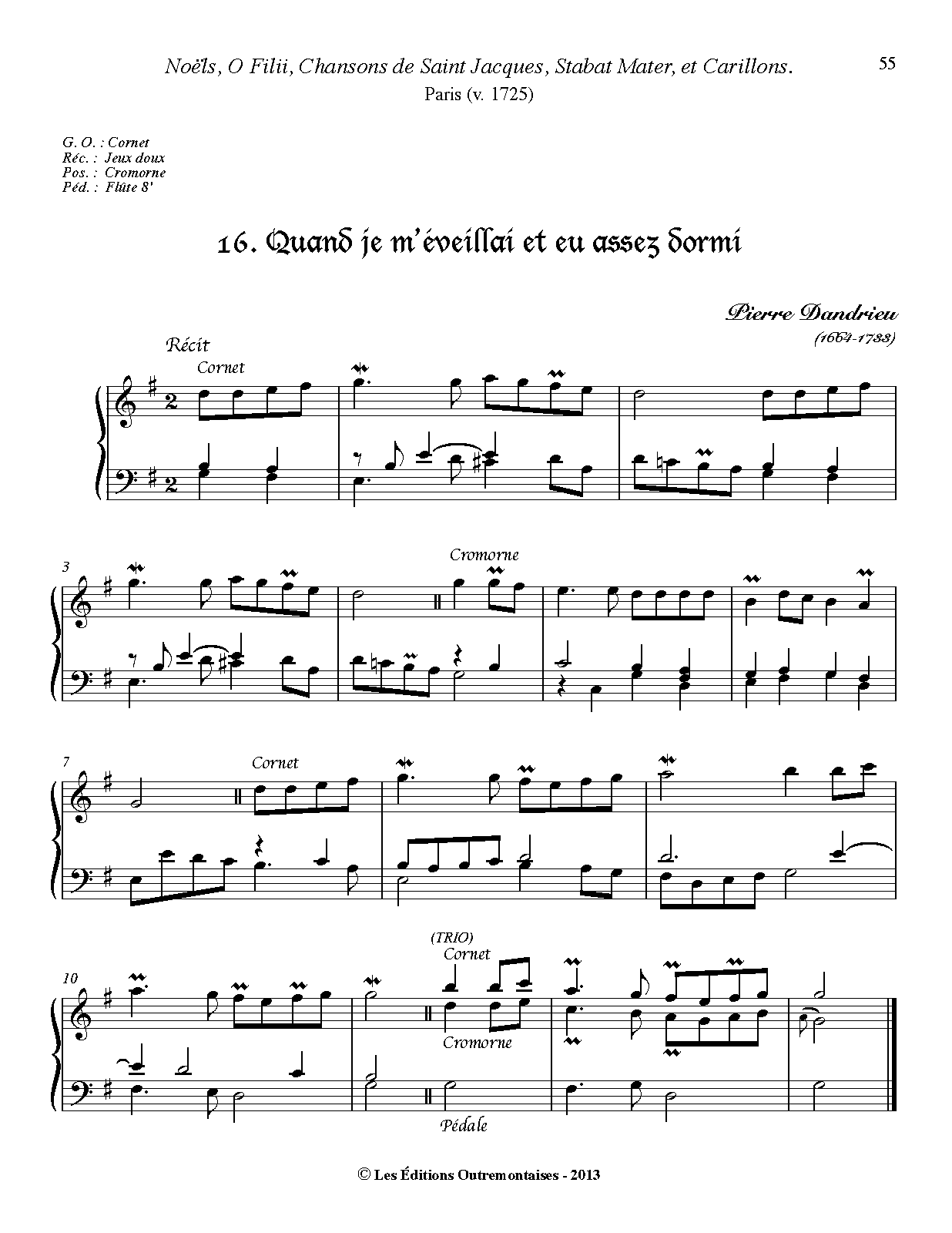 | First Publication. | 1733 in Noëls, O filii, chansons de Saint-Jacques, Stabat mater, et carillons (No.16) or before* |