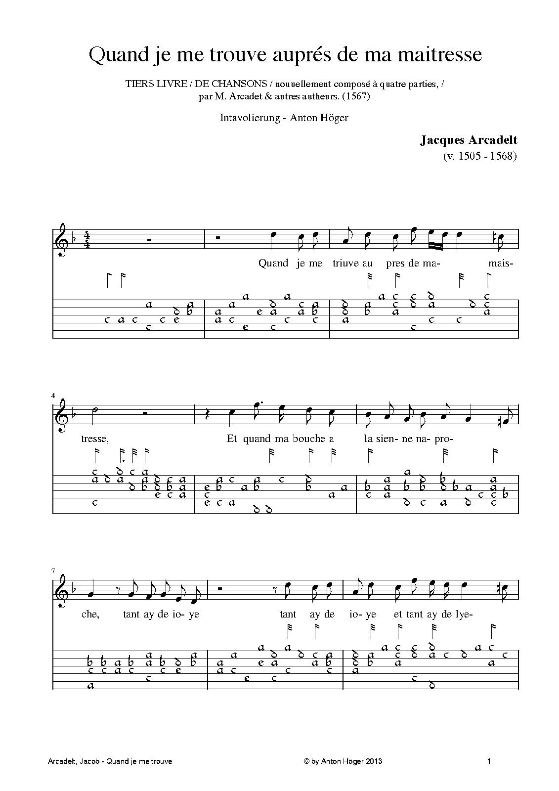 | First Publication | 1567 in Tiers livre de chansons nouuellement composé à quatre parties |