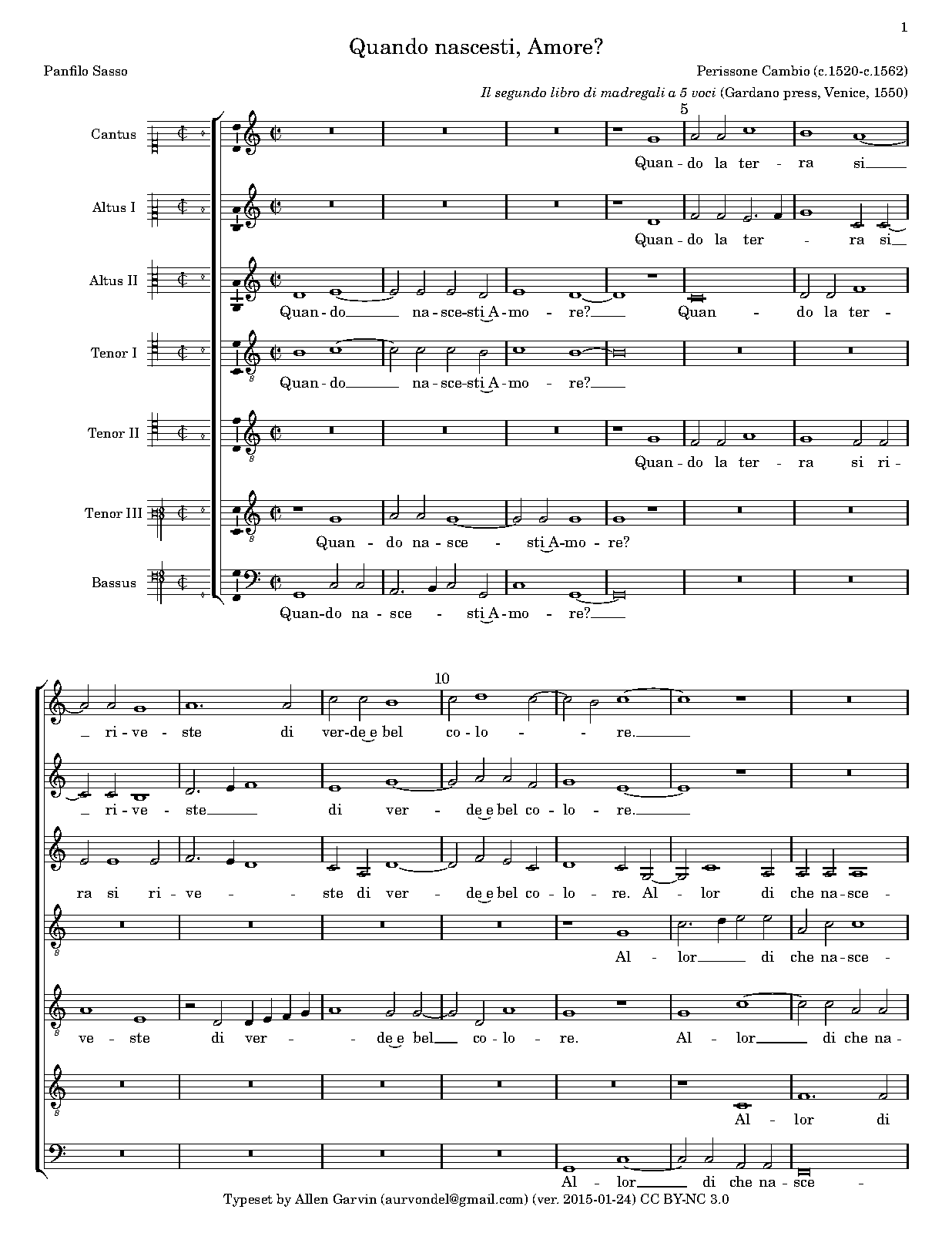 Compare with Willaert's setting of the same text, also for 7 voices, in his 1559 Musica Nova. Though published later, Willaert's setting almost certainly predates Perissone's, who was one of Willaert's student.