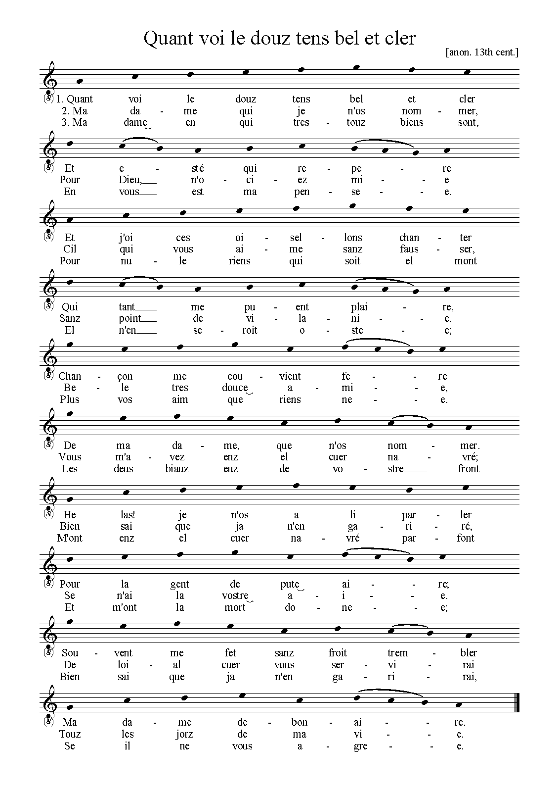 Melody in unmeasured notation with all 5 verses underlaid (verses 4-5 on 2nd page)