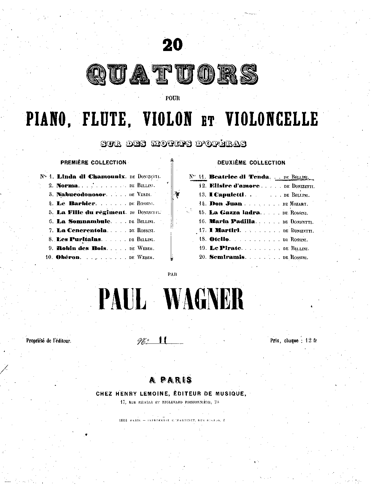 | Genre Categories | Quartets; Paraphrases; For flute, violin, cello, piano; |