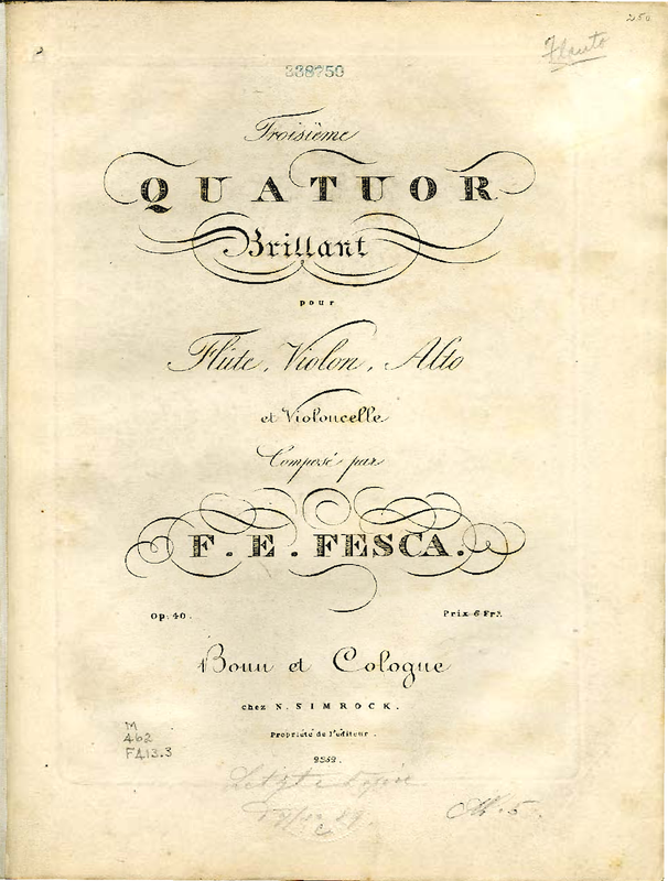 | Genre Categories | Quartets; For flute, violin, viola, cello; Scores featuring the flute; |
