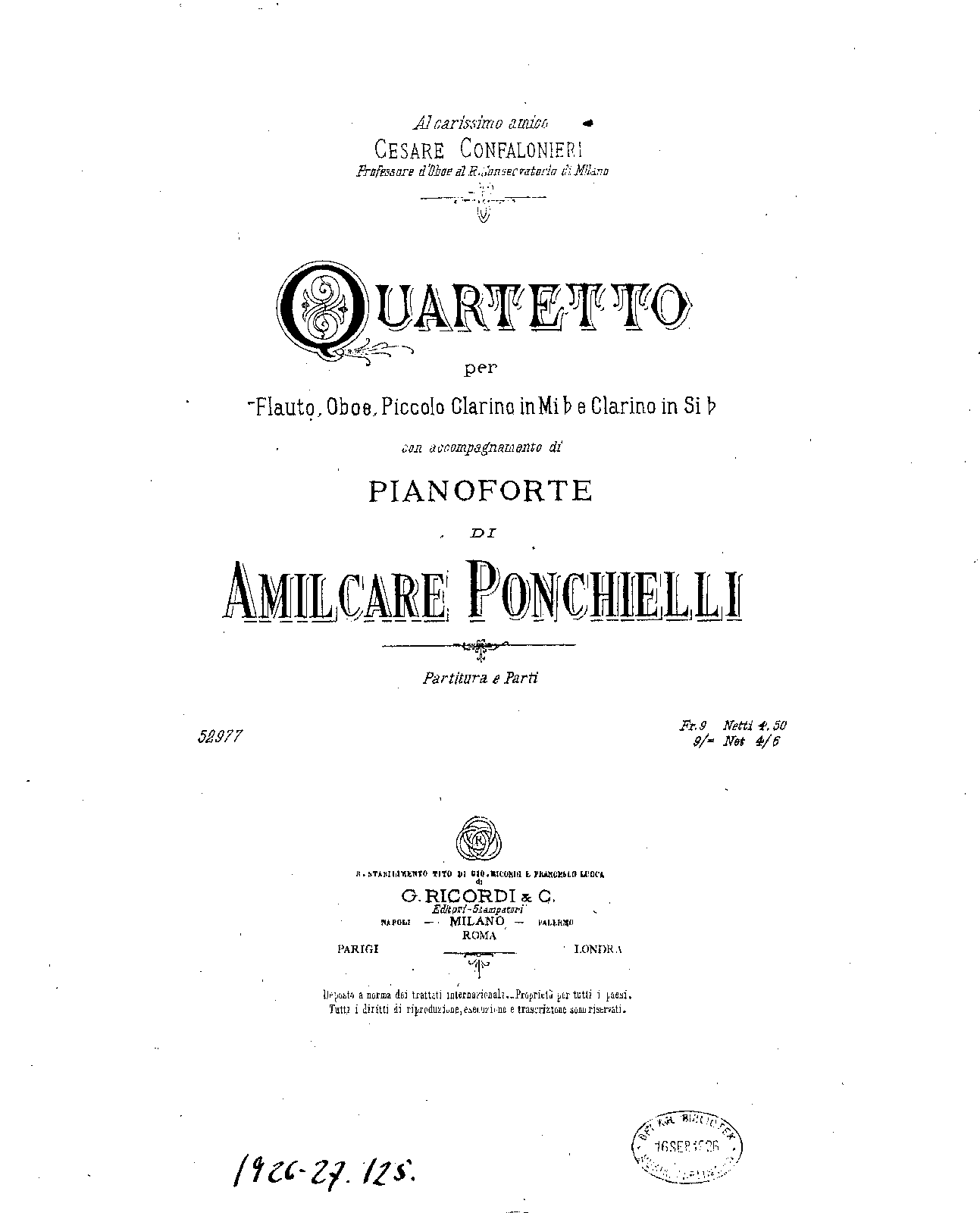 Quartetto per Flauto, Oboe, Piccolo Clarino in Mi♭ e Clarino in Si♭ con accompagnamento di Pianoforte