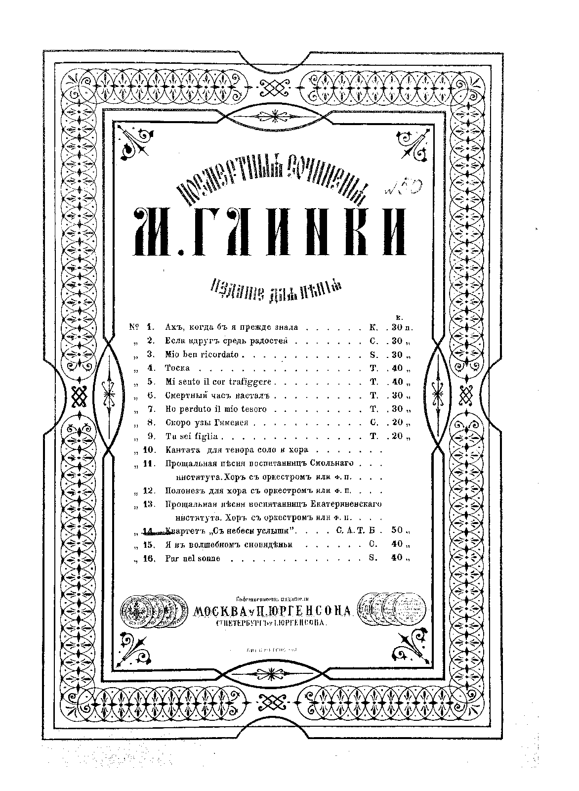 | Work Title | Молитва «С небеси услыши», Квартет для С.А.Т.Б. (сопрано, альт, тенор, бас) и фортепиано |