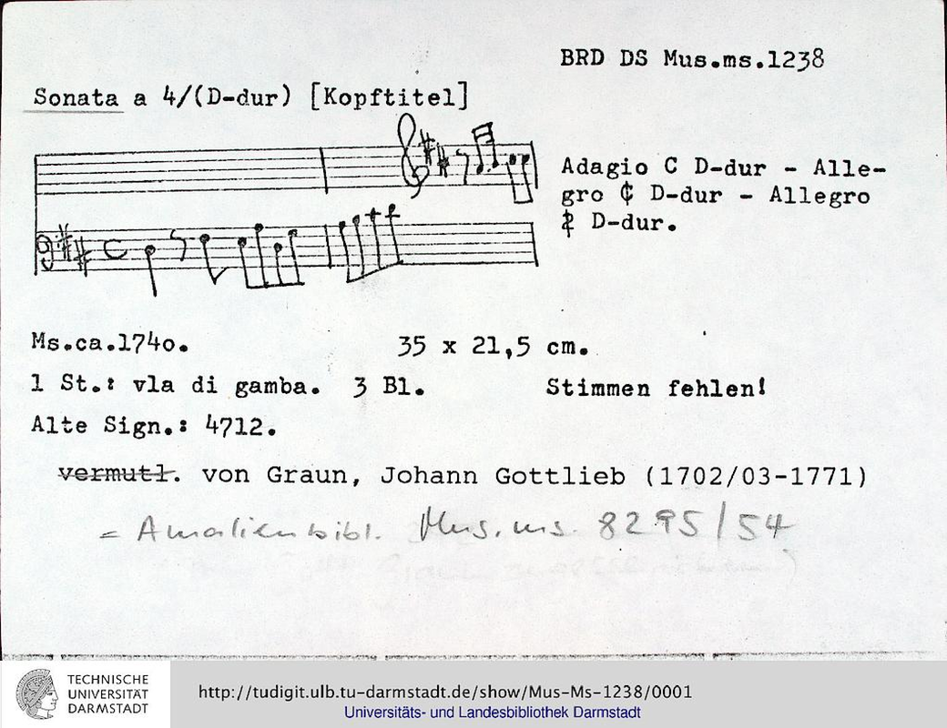 | Opus/Catalogue NumberOp./Cat. No. | GraunWV A:XIV:1 |
