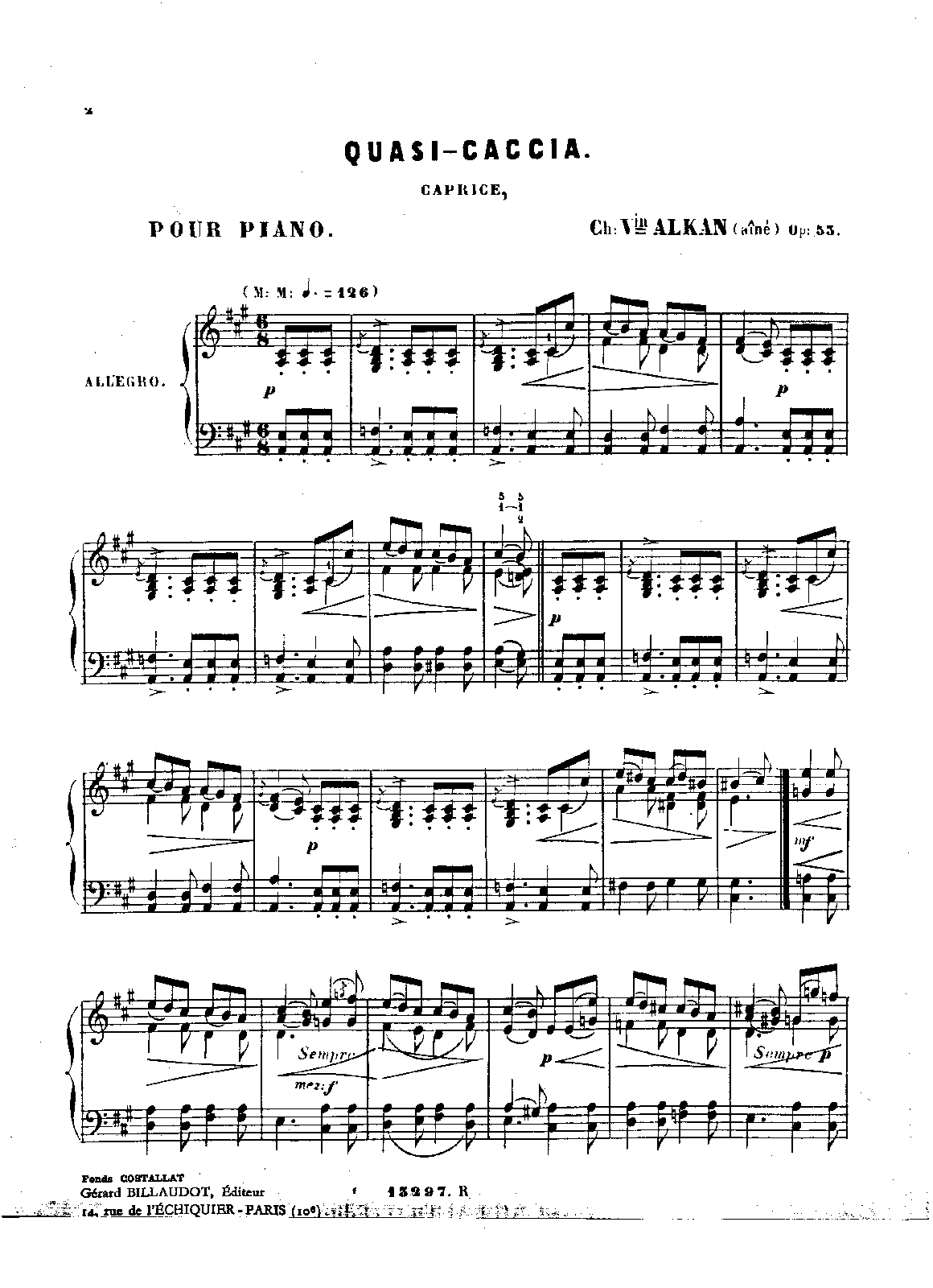The Delaborde (Alkan's son) and Phillip editions were amended reprints of the original Richault plates issued ca.1905-1920 by Costallat & Cie. (Richault's successor), with the R. often placed before the plate number rather than after as in the original Richault printings.