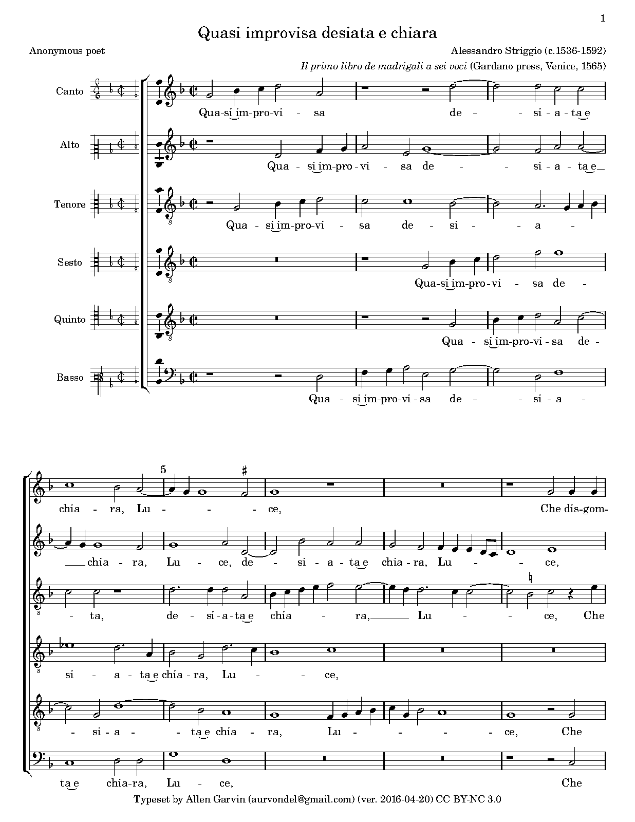 | First Publication | 1560 in Il Primo Libro de Madrigali a 6 voci (No.15) |
