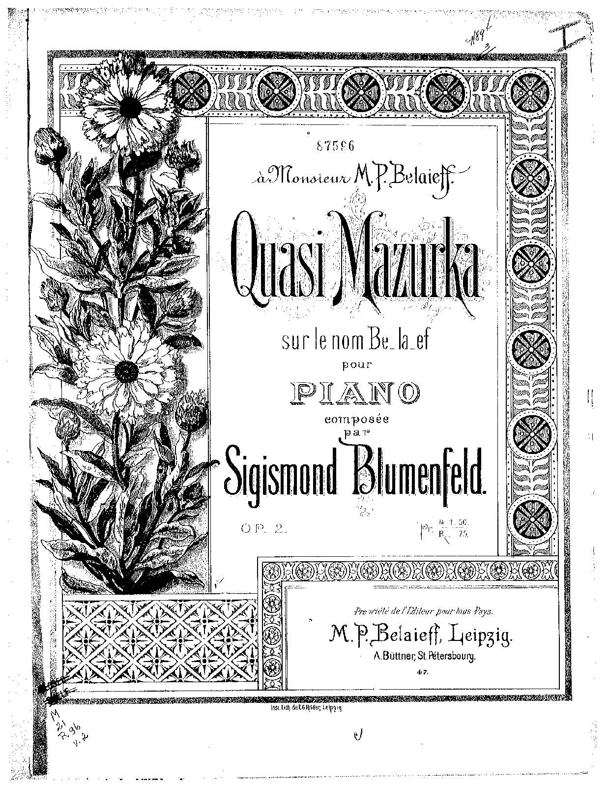 | First Publication | 1887 – Leipzig: M.P. Belaieff |