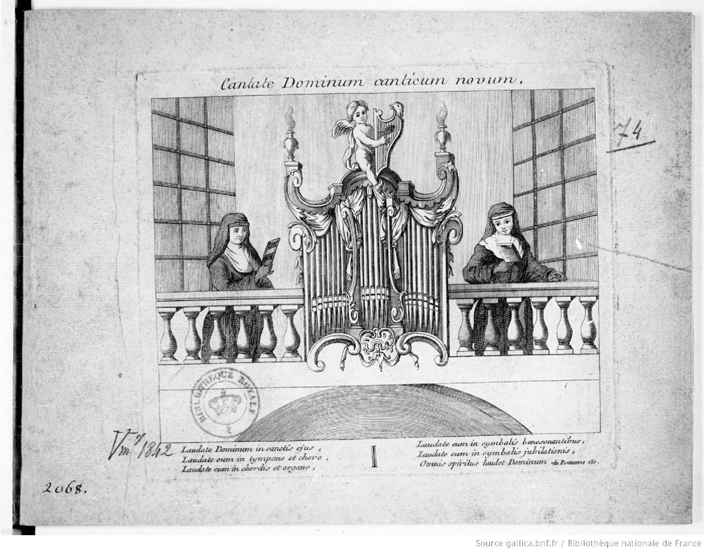 Quatre messes à deux voix égales avec l'accompagnement de l'orgue à l'usage des dames religieuses, mêlées de solo, duo et choeurs qui peuvent aussi se chanter par les hautes-contres et tailles...