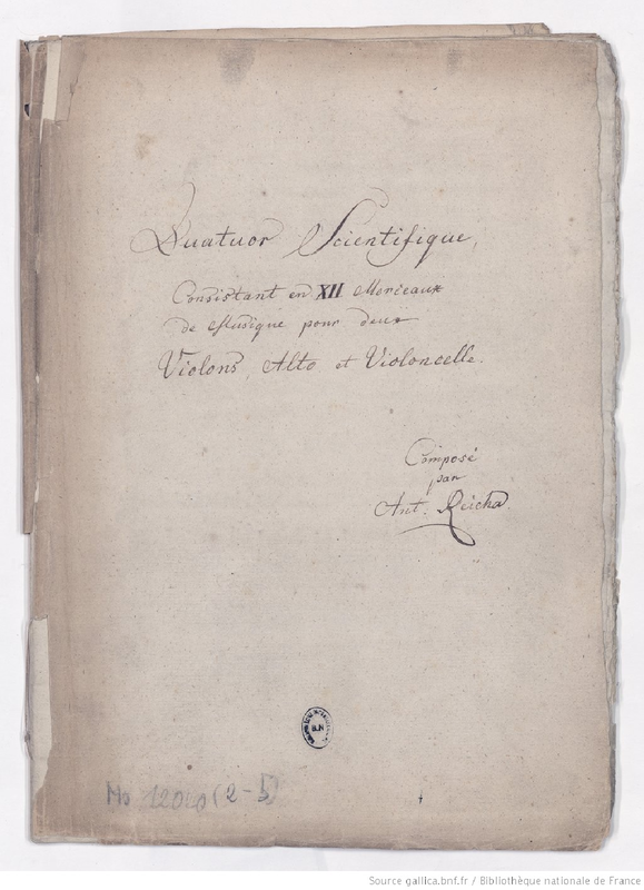 | Alternative. Title | Quatuor Scientifique consistant en XII Morceaux de Musique pour deux violons, alto et violoncelle |