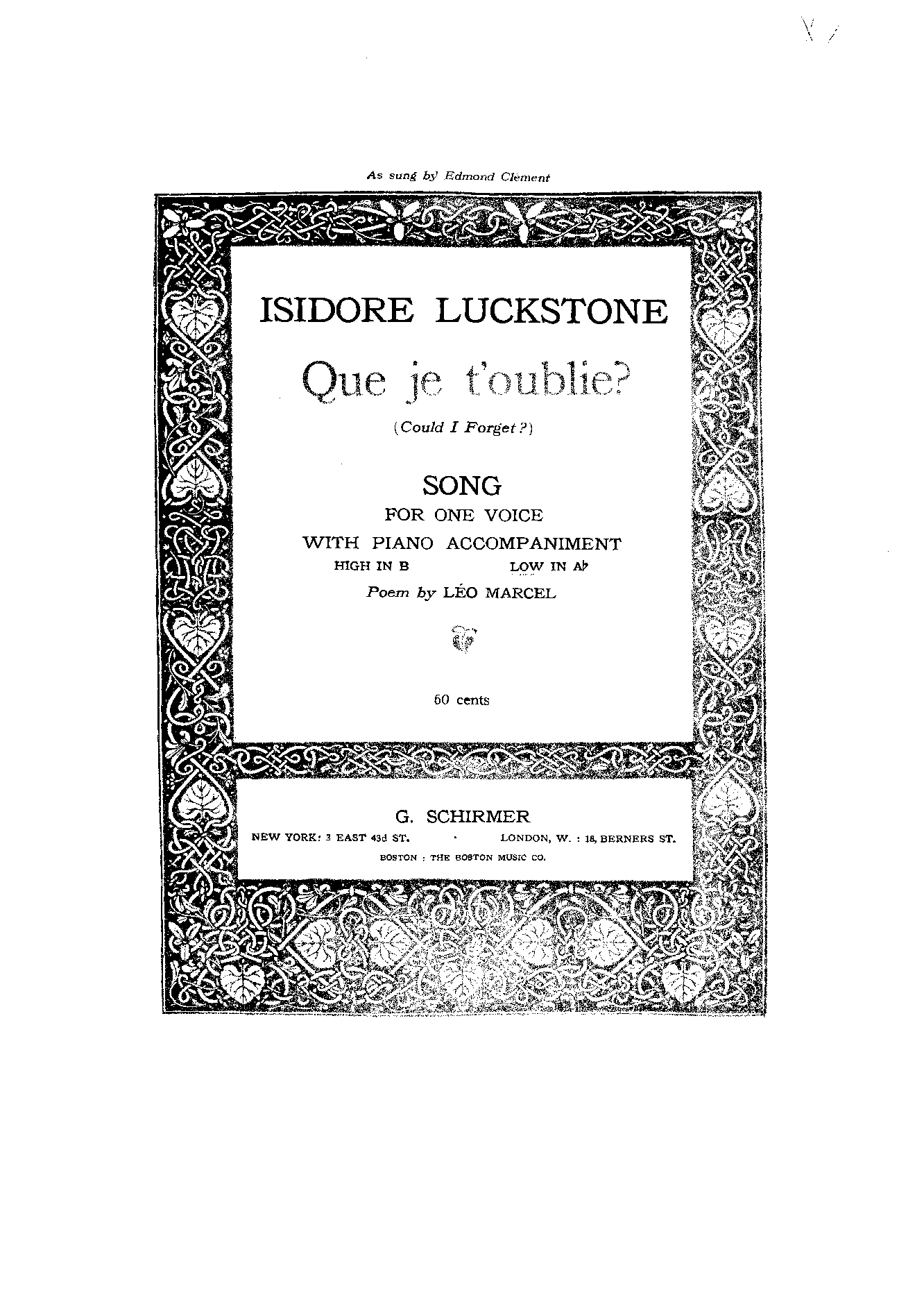 | Genre Categories | Songs; For voice, piano; For voices with keyboard; |
