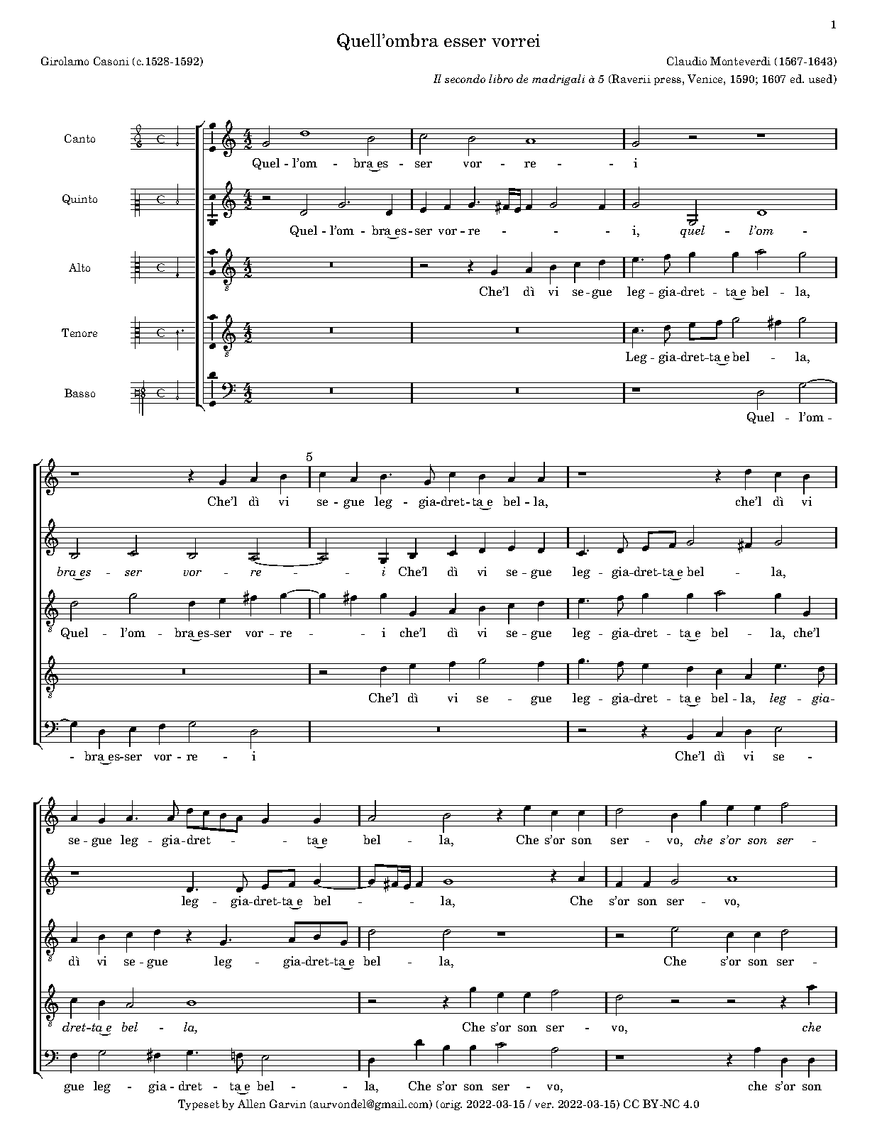 | First Publication | 1590 in Il secondo libro de madrigali à 5 (Venice: Raverii press) |