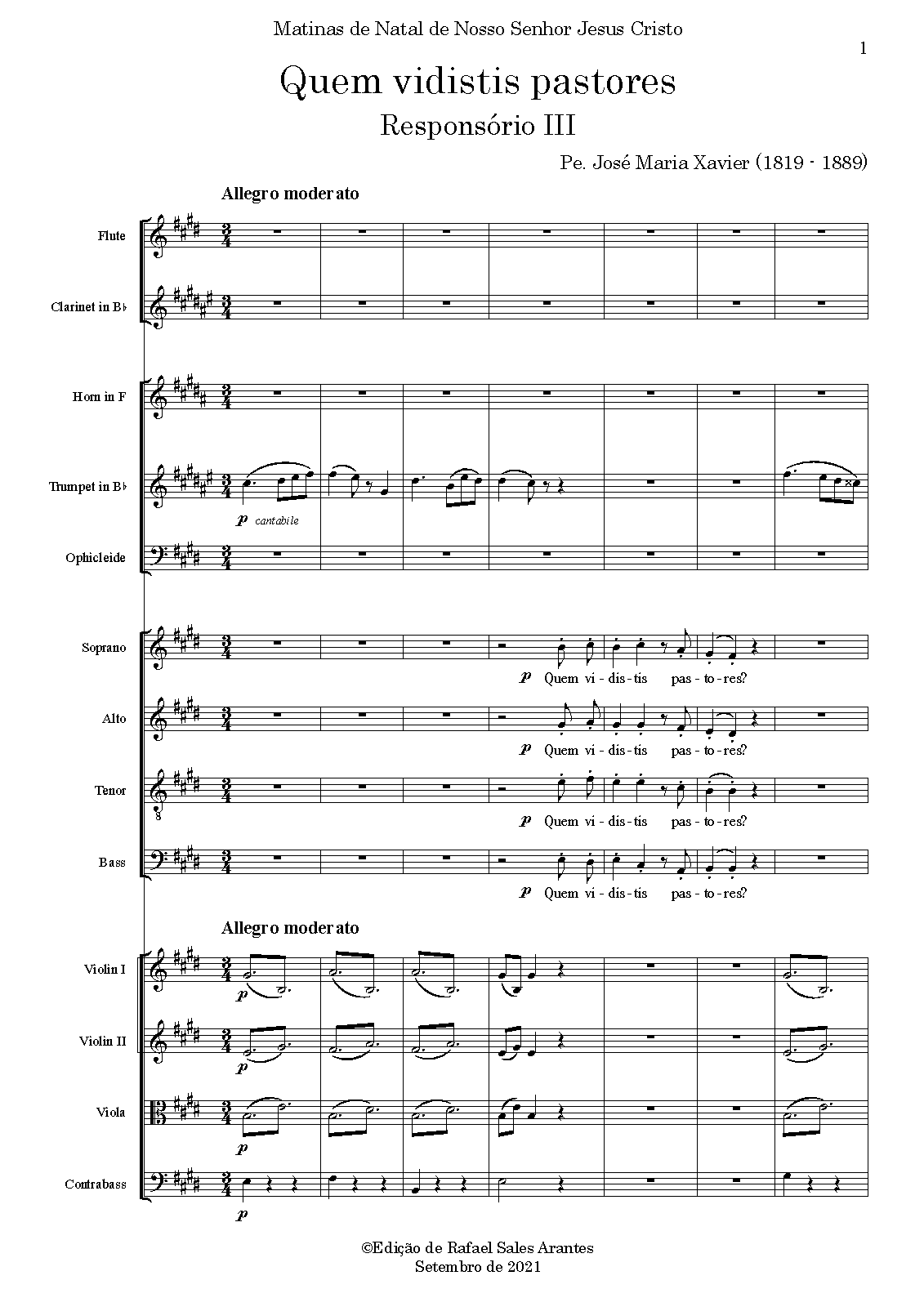 | Instrumentation | Voices: mixed chorus (SATB) Orchestra: flute, clarinet (B♭), 2 horns (F/C), trumpet (B♭), ophicleide, strings |