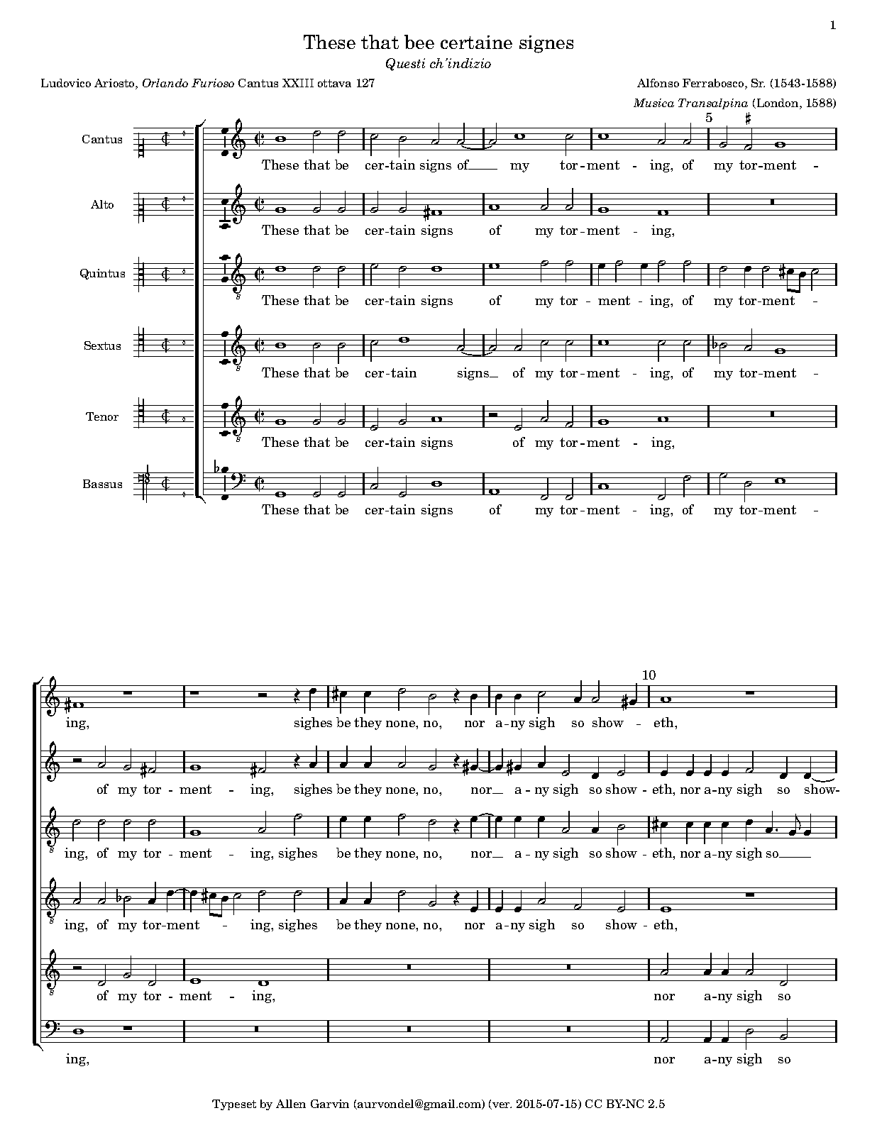 | First Publication | 1588 in Musica Transalpina, Book 1 |