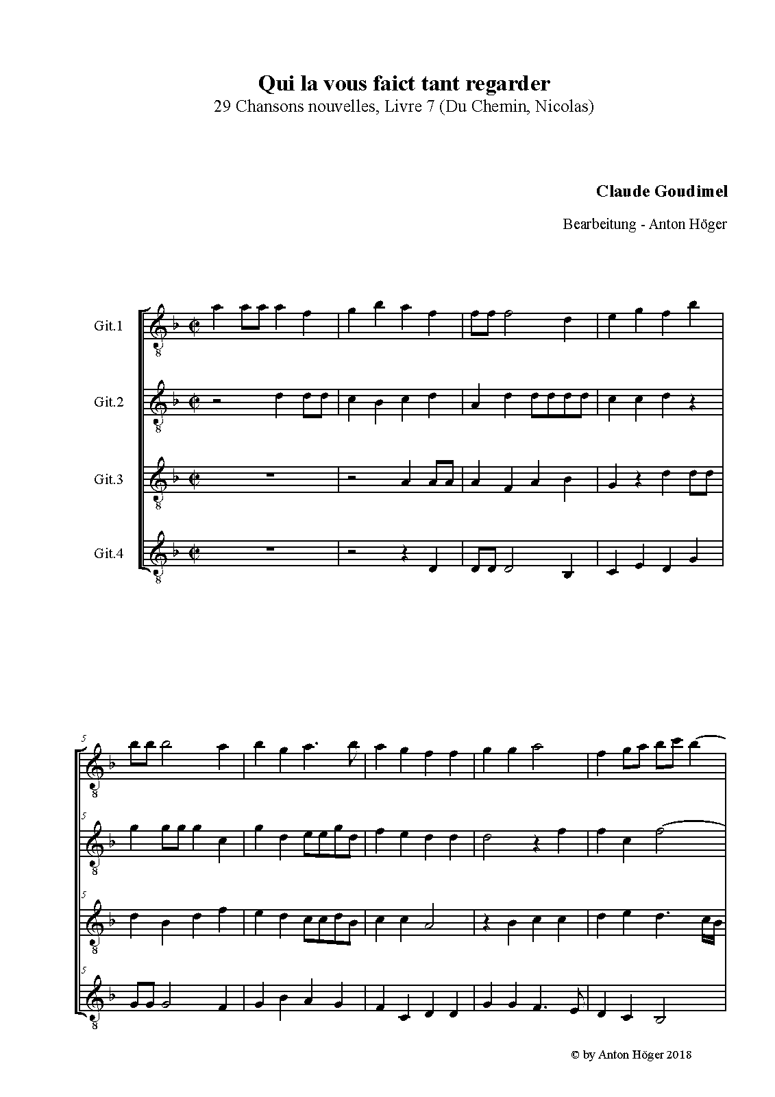 | First Publication. | 1550 in 29 Chansons nouvelles, Livre 7 (Du Chemin, Nicolas) |