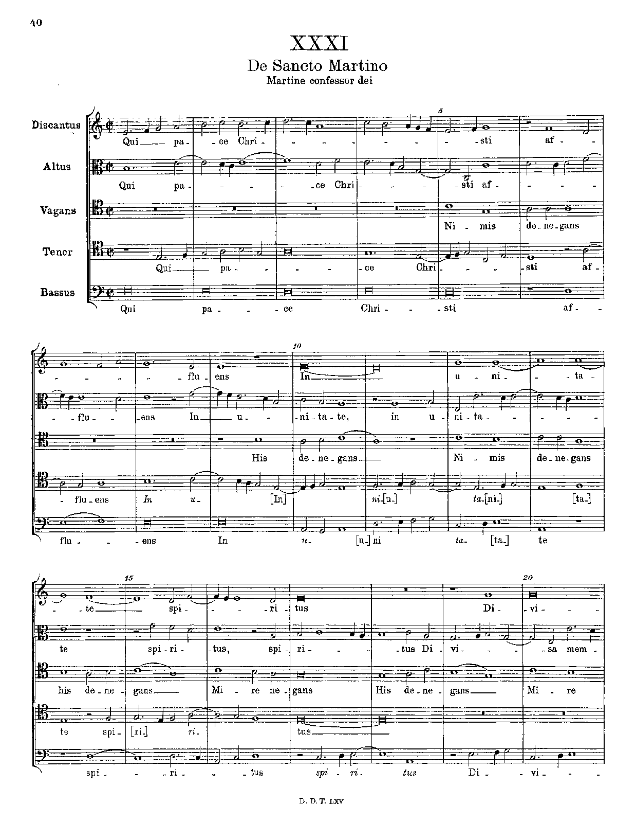 | Instrumentation | 5 voices (S A T Vagans B) |