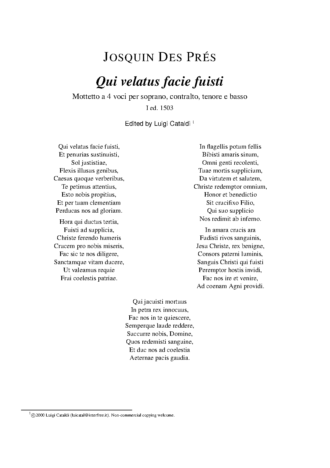 | Work Title | Qui velatus facie fuisti |