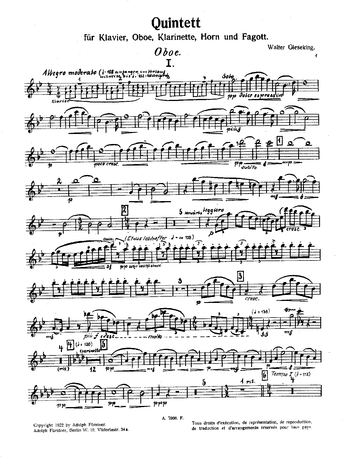 Quintett für Klavier, Oboe, Klarinette, Horn und Fagott