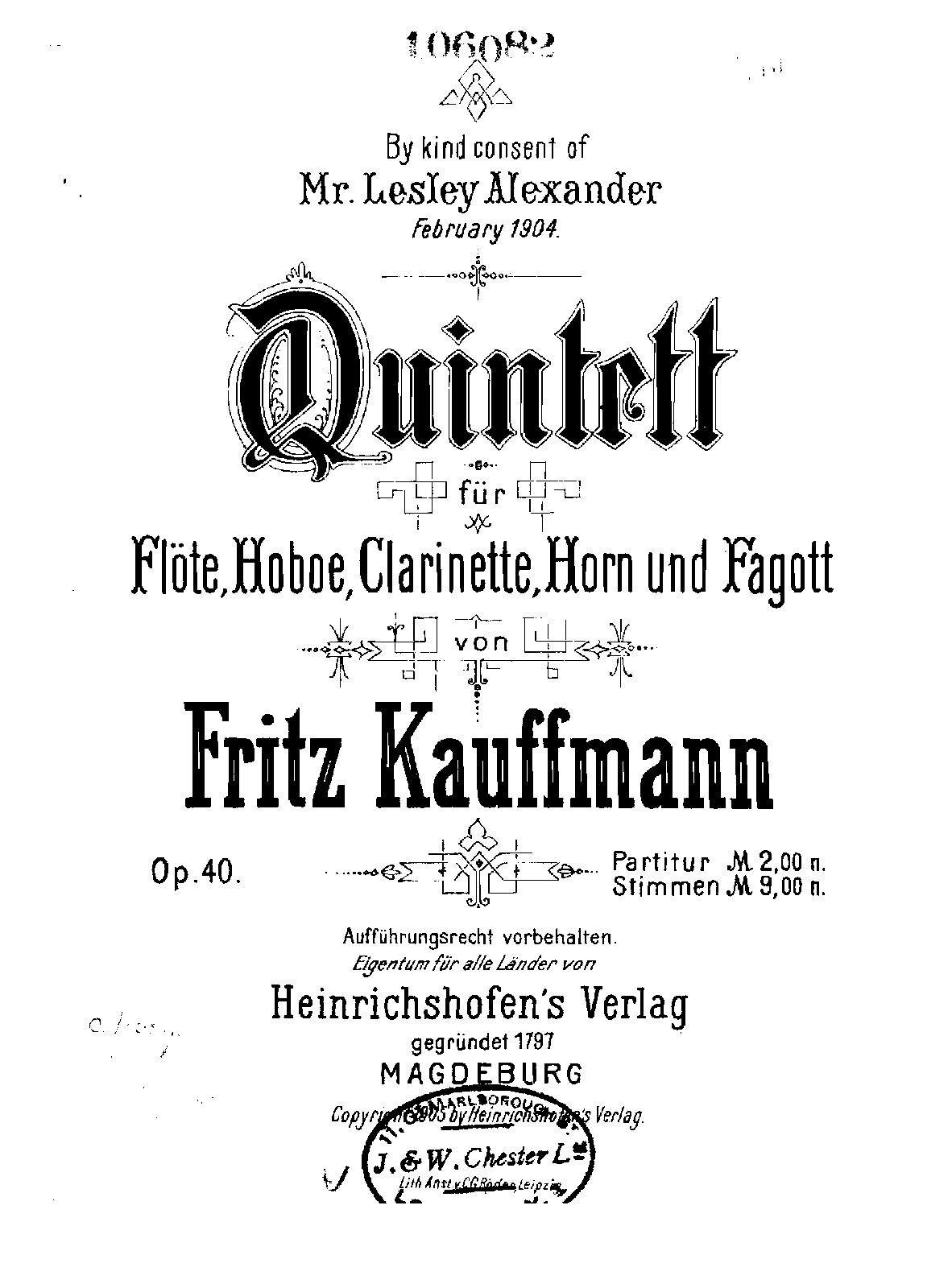 First page of score says "By kind consent of Mr. Lesley Alexander, February 1904" - this may be the dedication.