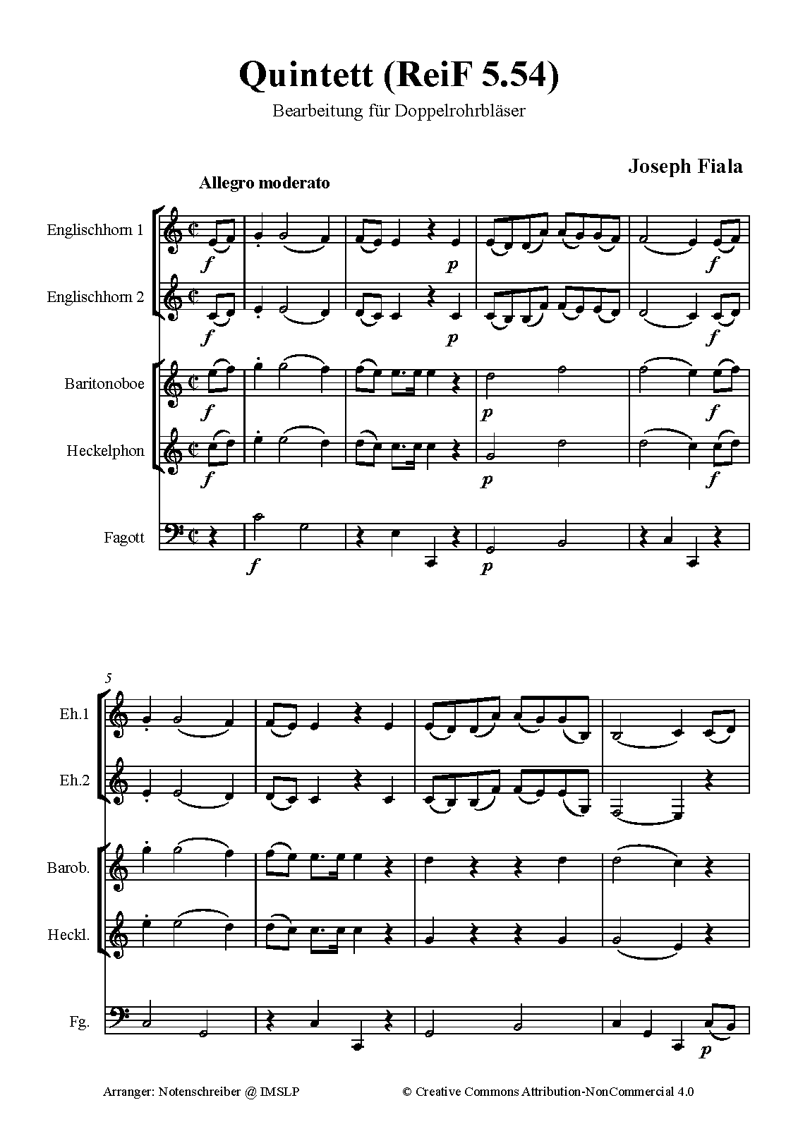 | Genre Categories | Quintets; For 2 English horns, bassoon, 2 horns; Scores featuring the English horn; |