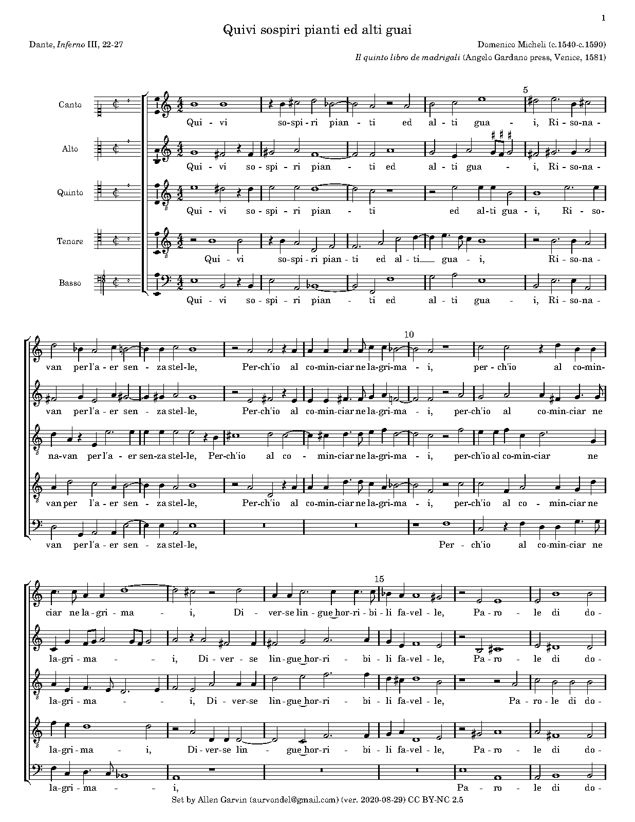 | Work Title | Quivi sospiri pianti ed alti guai |