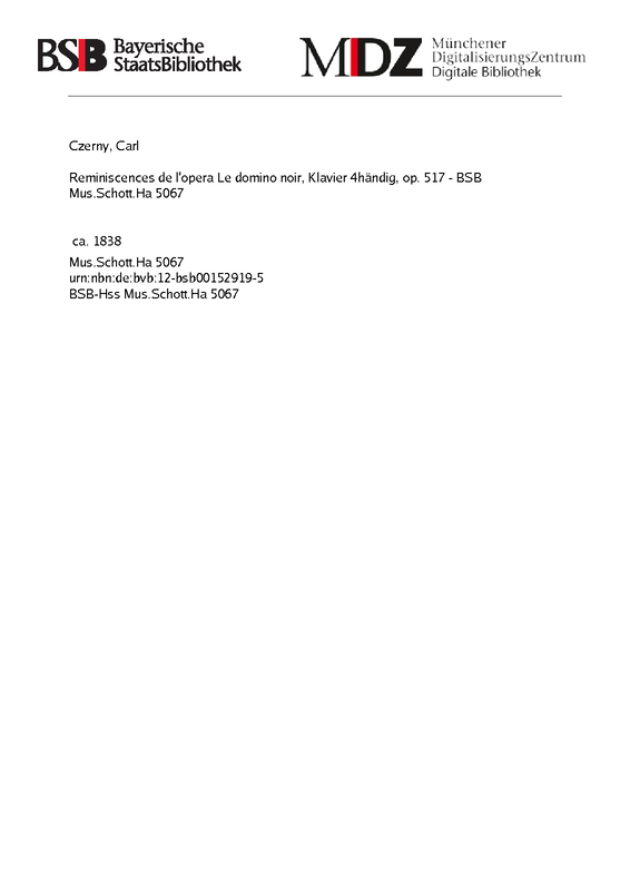 | Alternative. Title | Reminiscences de l'opera Le domino noir, pf 4hands, op. 517 |