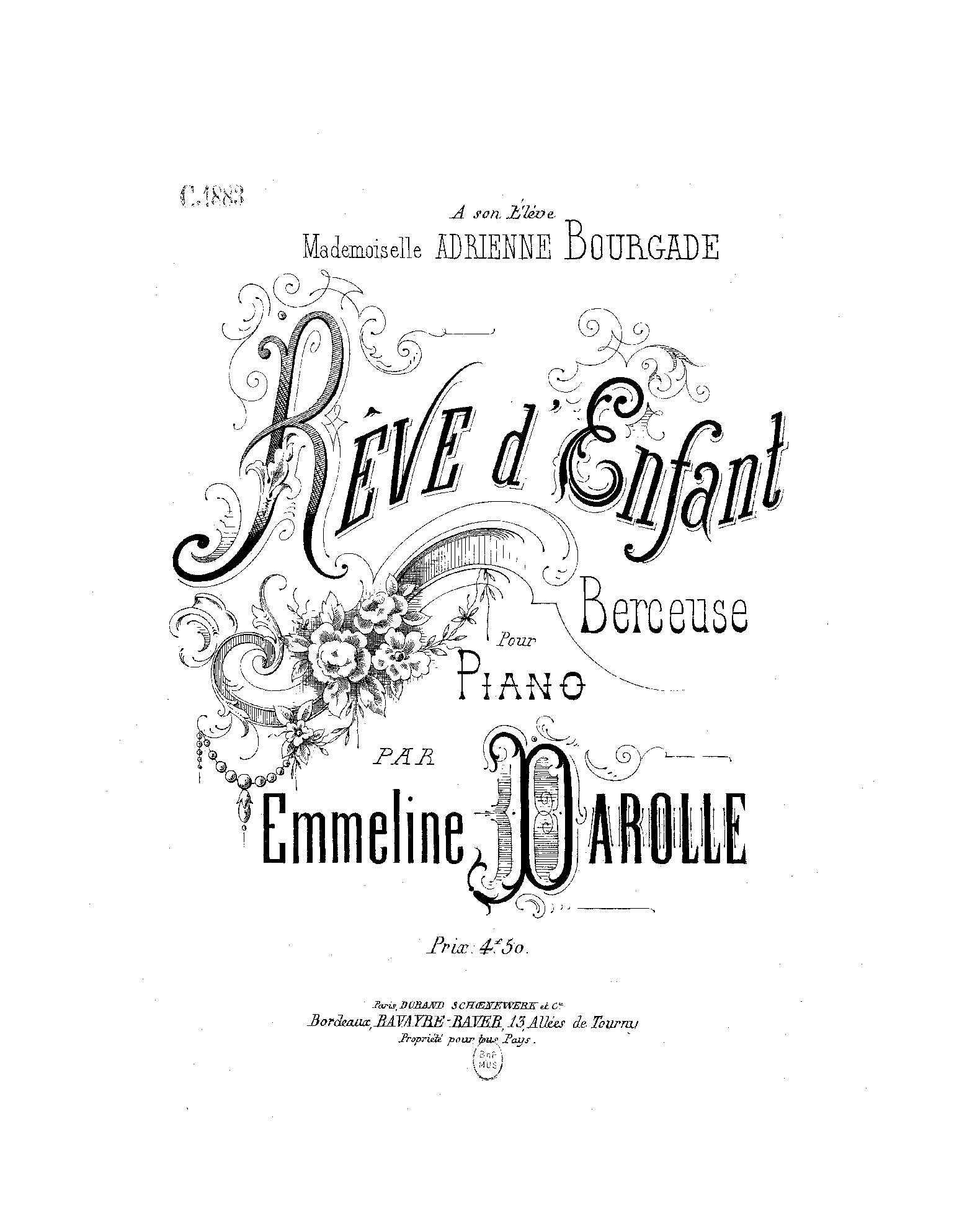 | Dedication | à son élève Mademoiselle Adrienne Bourgade |