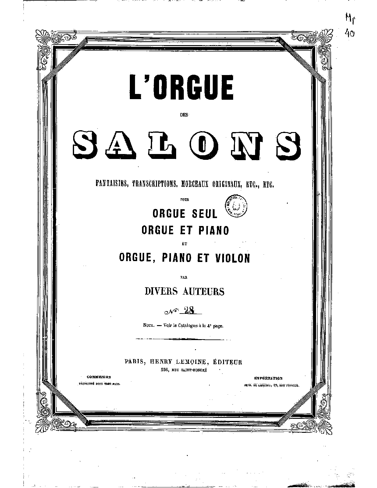 | Genre Categories | Pieces; For harmonium; Scores featuring the harmonium |