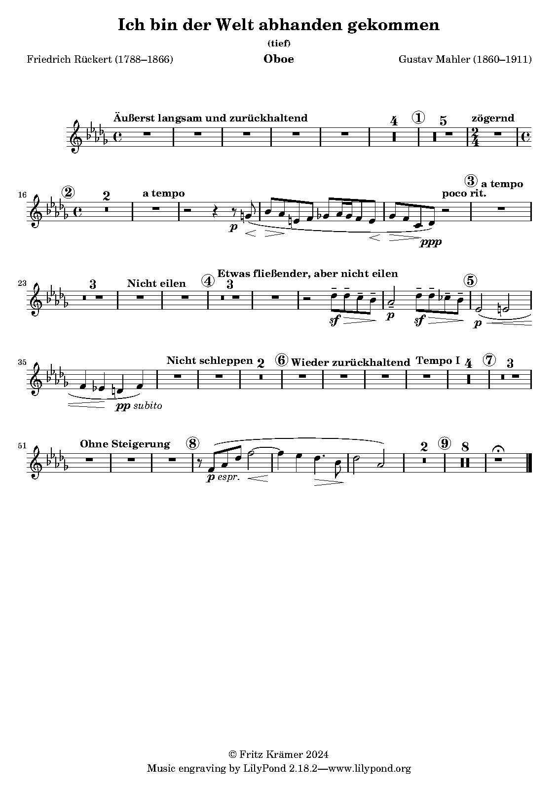 - Ich bin der Welt abhanden gekommen (F major, 67 bars) [GMW 41]