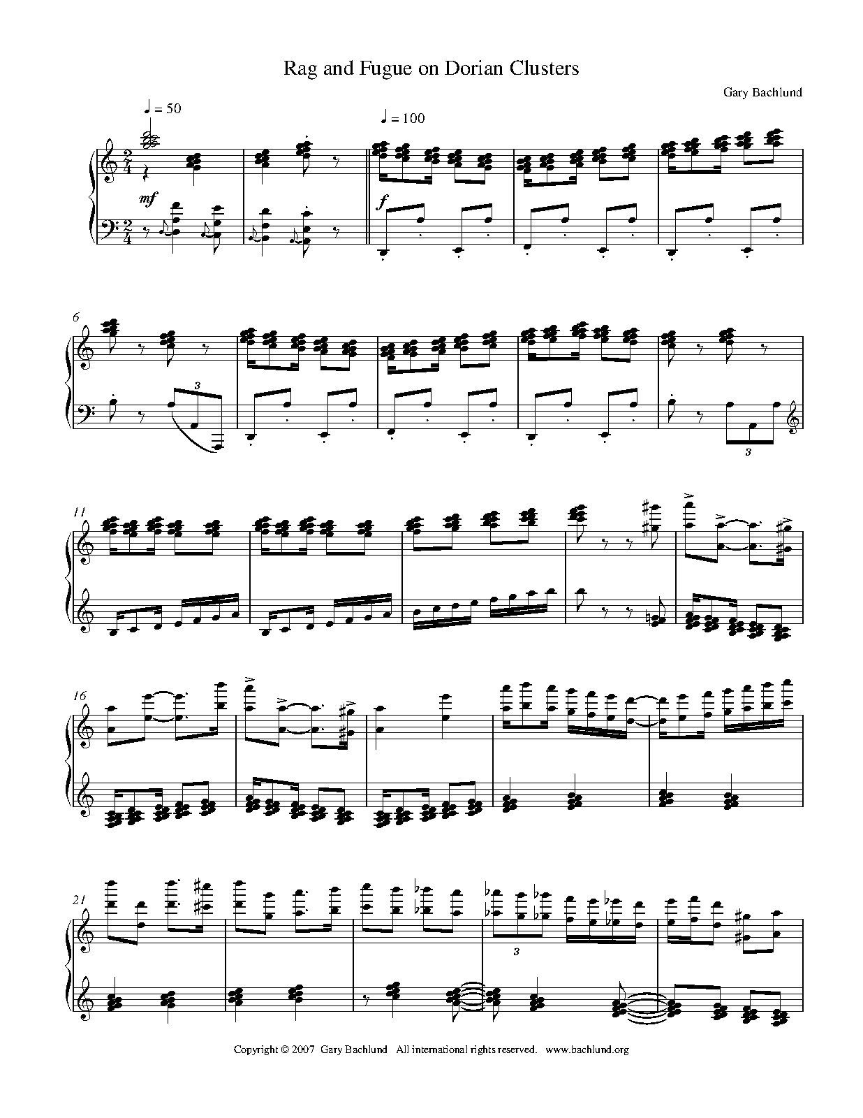 | Work Title | Rag and Fugue on Dorian Clusters |
