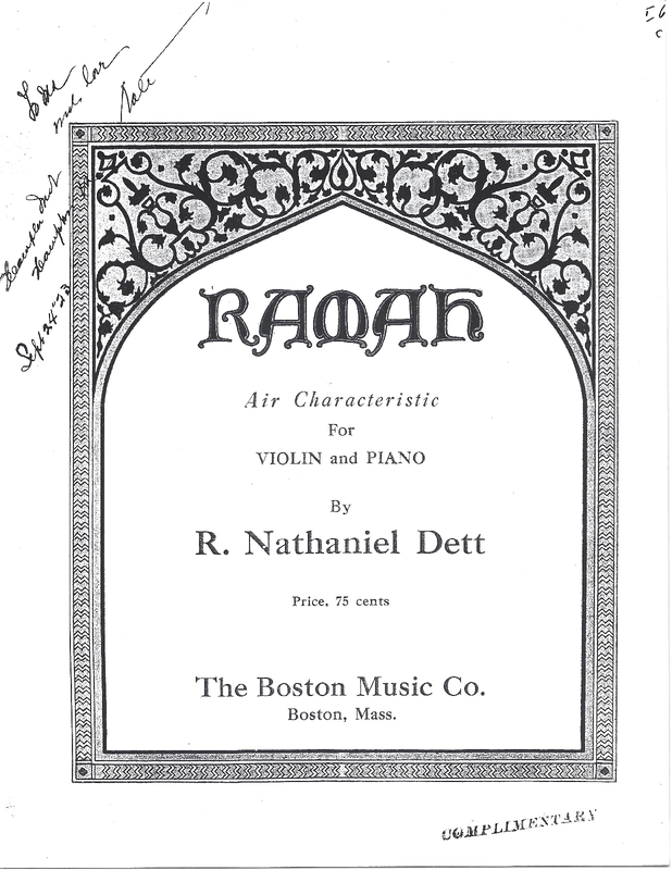 | Extra Information | The only published violin and piano piece by Dett. There is a manuscript for violin and piano called "Confessional". |
