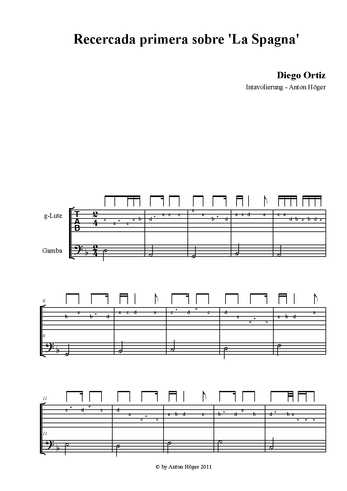 | Work Title | Recercada primera sobre el canto llano 'La Spagna' |