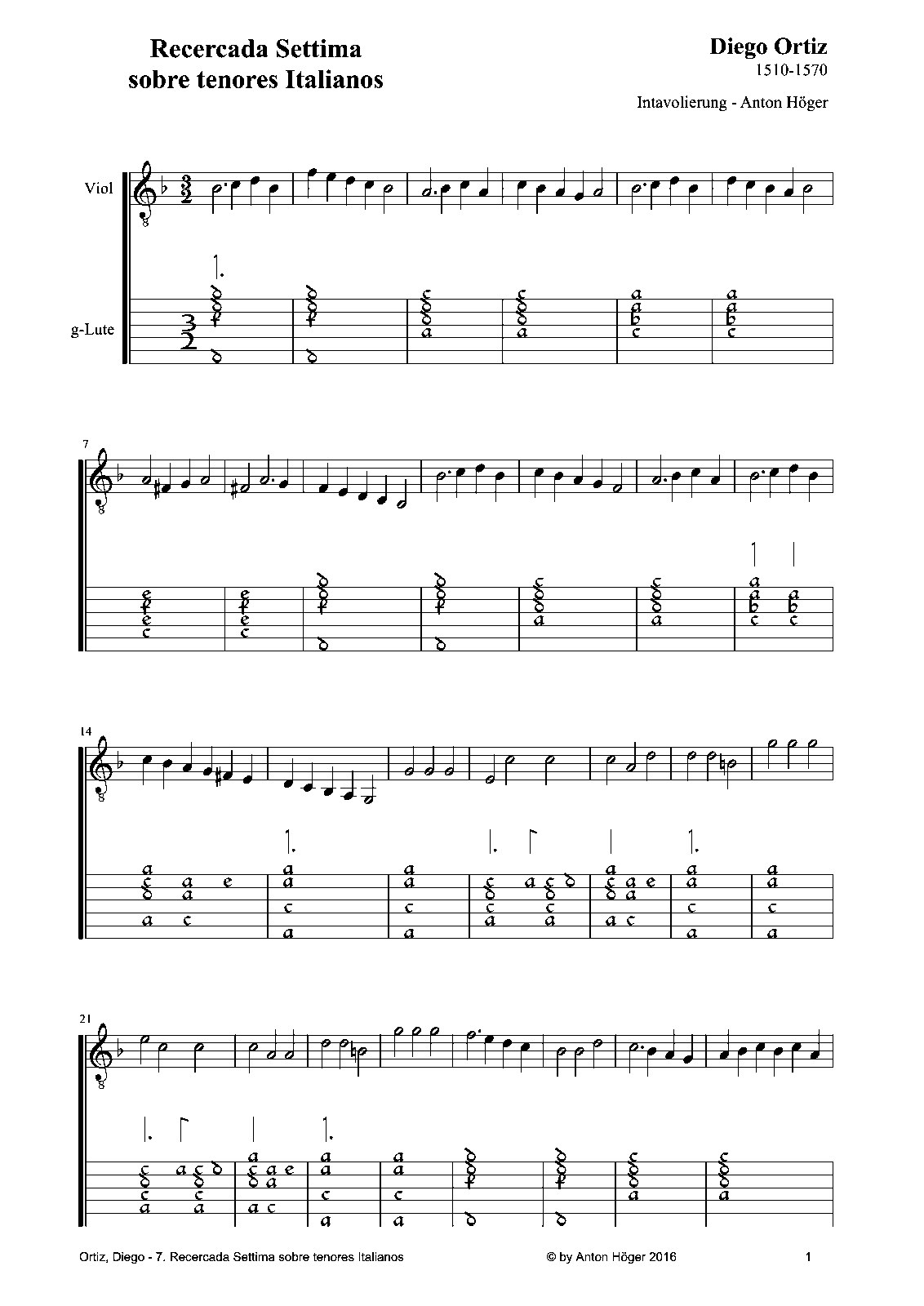 | Work Title | Recercada Settima sobre tenores Italianos |