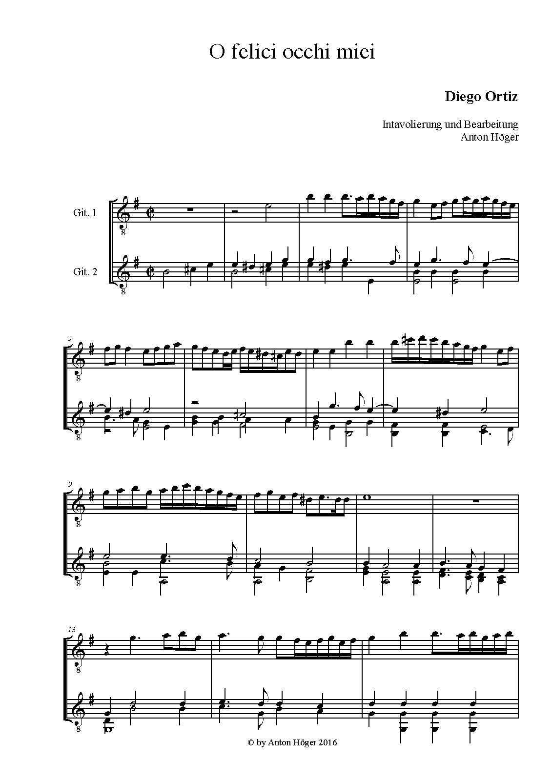 | Related Works | Based on O felic’occhi miei by Arcadelt |