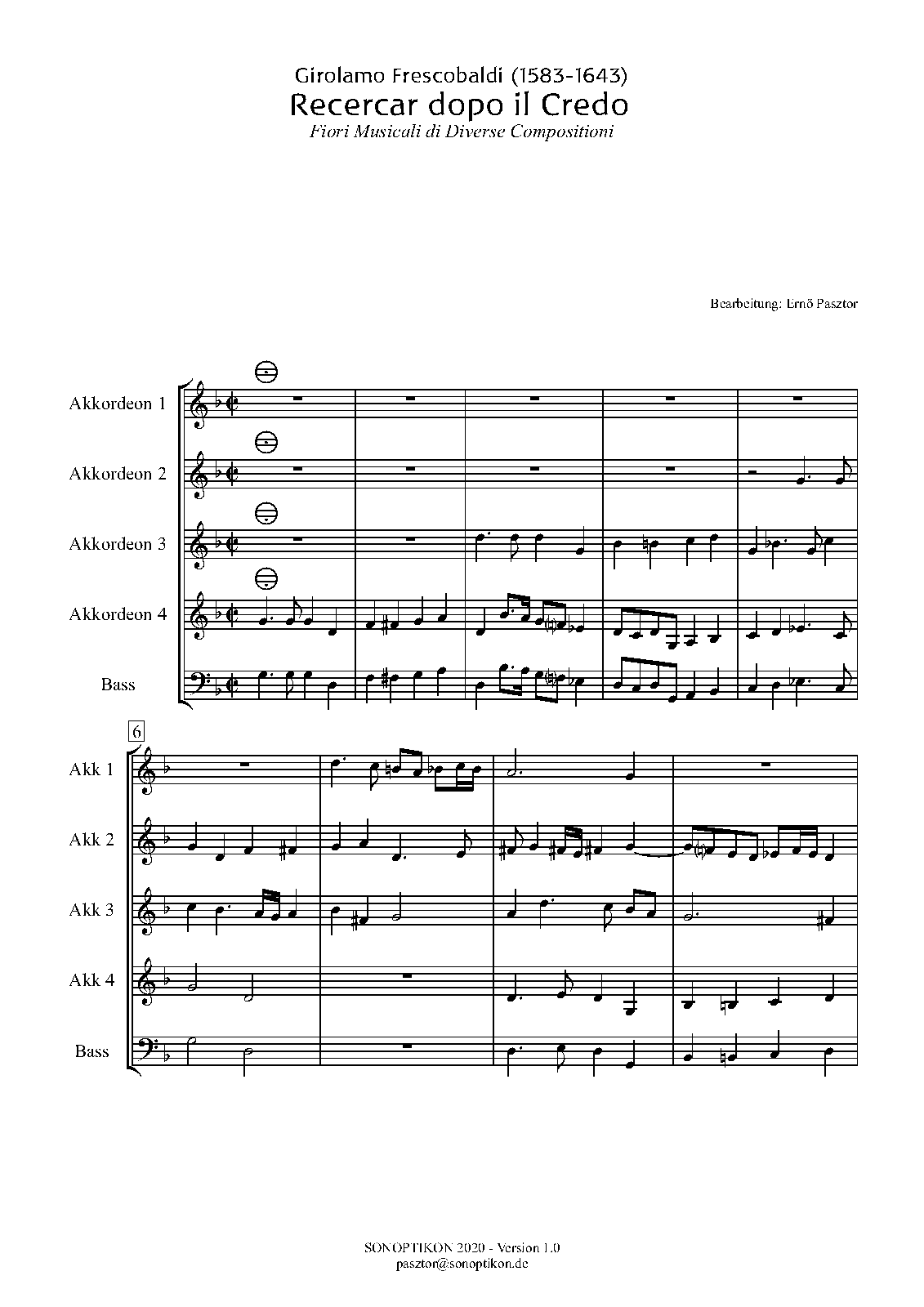 | First Publication. | 1635 in Fiori Musicali, Op.12 (No.42) |