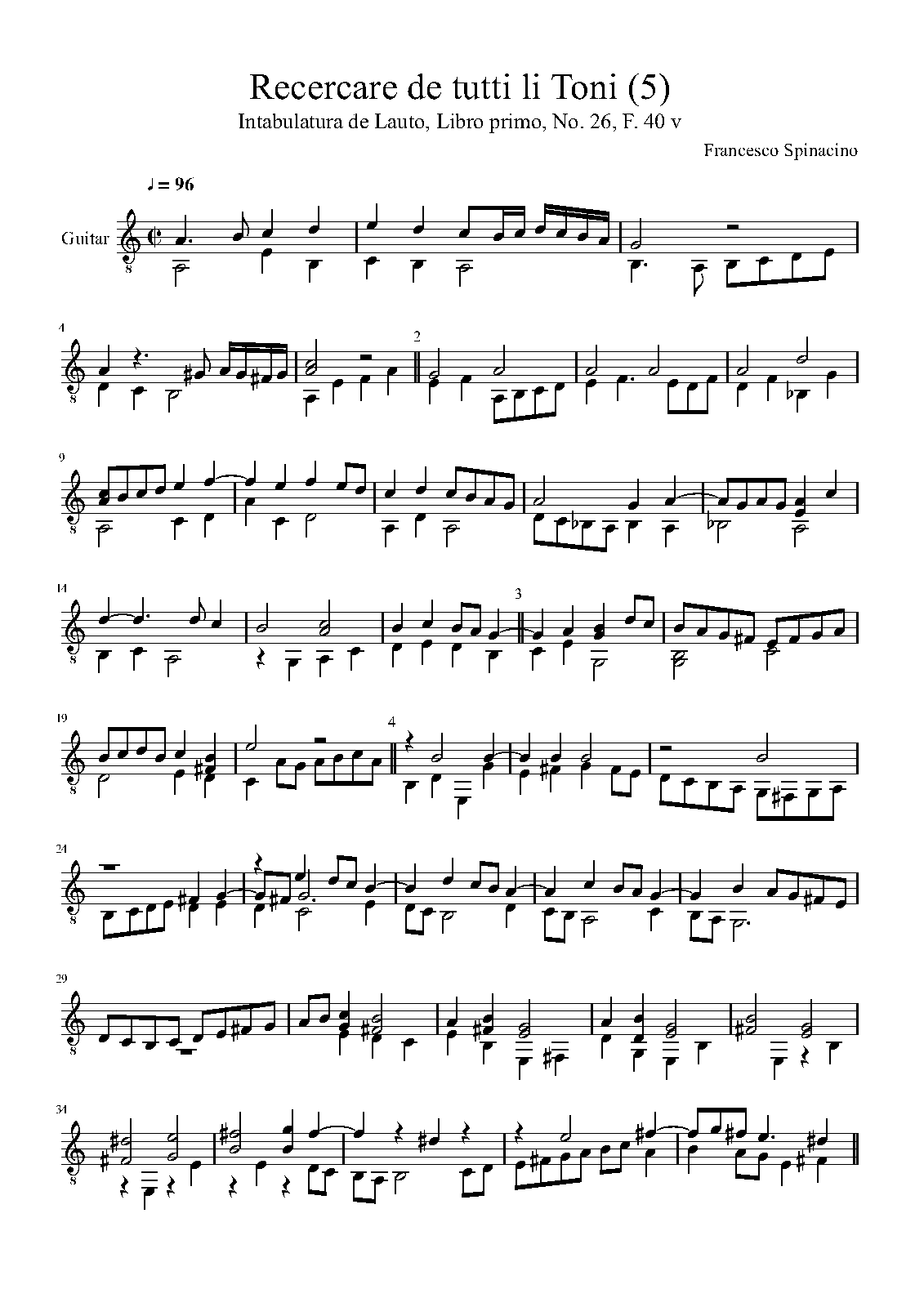 | First Publication | 1507 in Intabulatura de lauto, Libro 1 (No.26) |