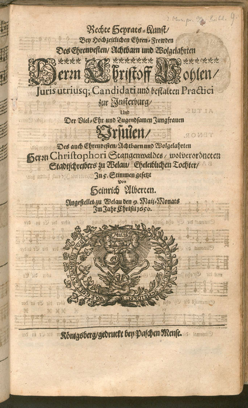 | Alternative. Title | Rechte Heyrats-Kunst bey hochzeitlichen Ehren-Freuden des Herrn Christoff Pohlen und der Jungfrauen Ursula des Herrn Christophori Stangenwalder eheleiblichen Tochter |