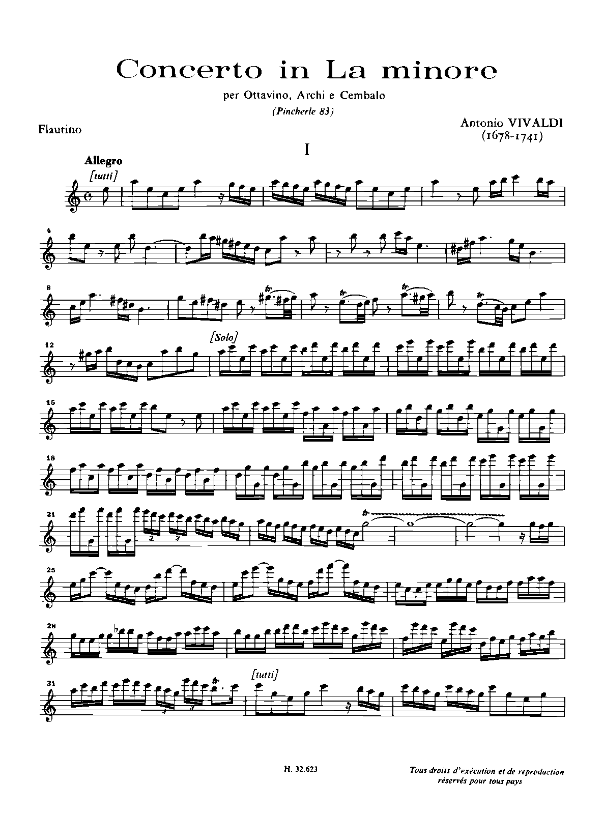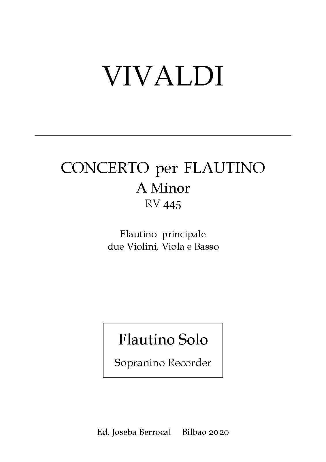 Misc. Notes Orig. for Flautino (sopranino recorder) in A minor. Transposed a 4th down to E minor, as Vivaldi points out.
