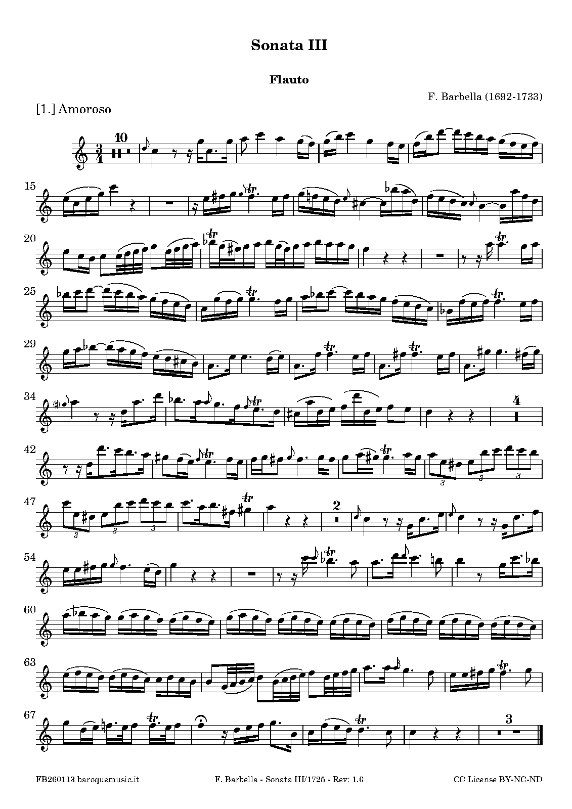 Concerti di flauto violini violetta, e basso di diversi autori : Sonata terza
