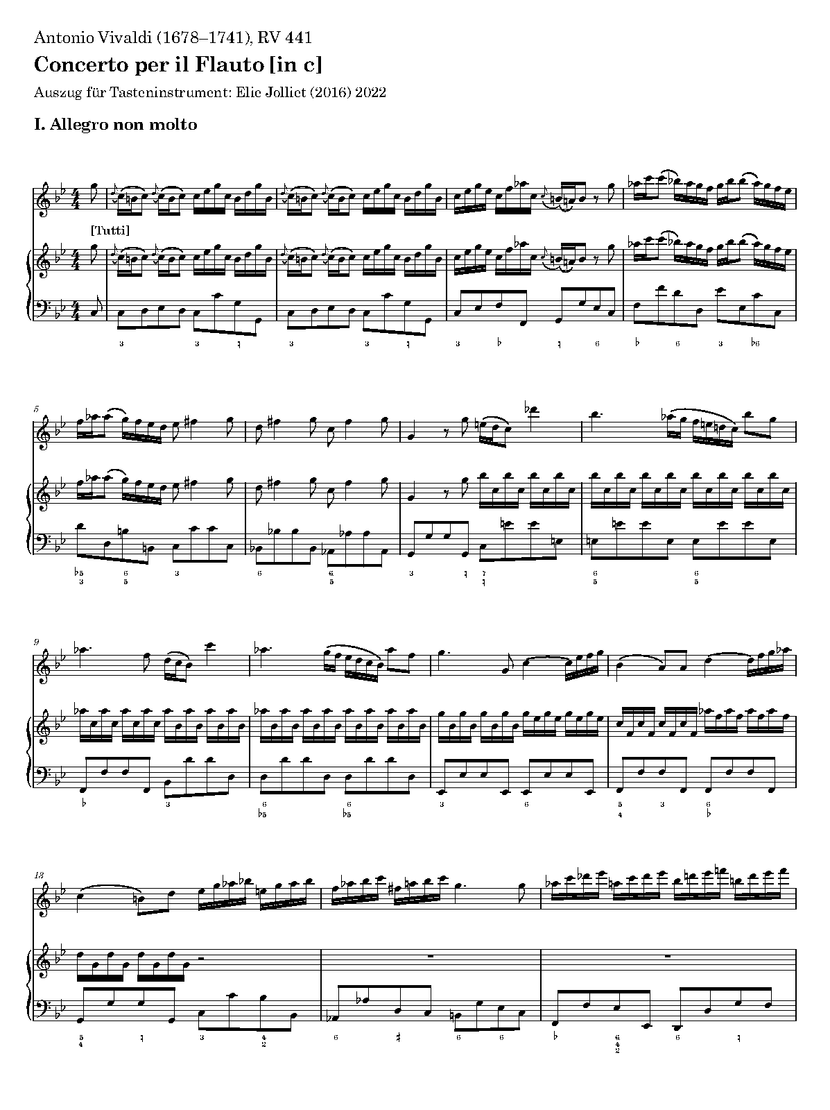 For Flute, Strings and Continuo (Tassinari)