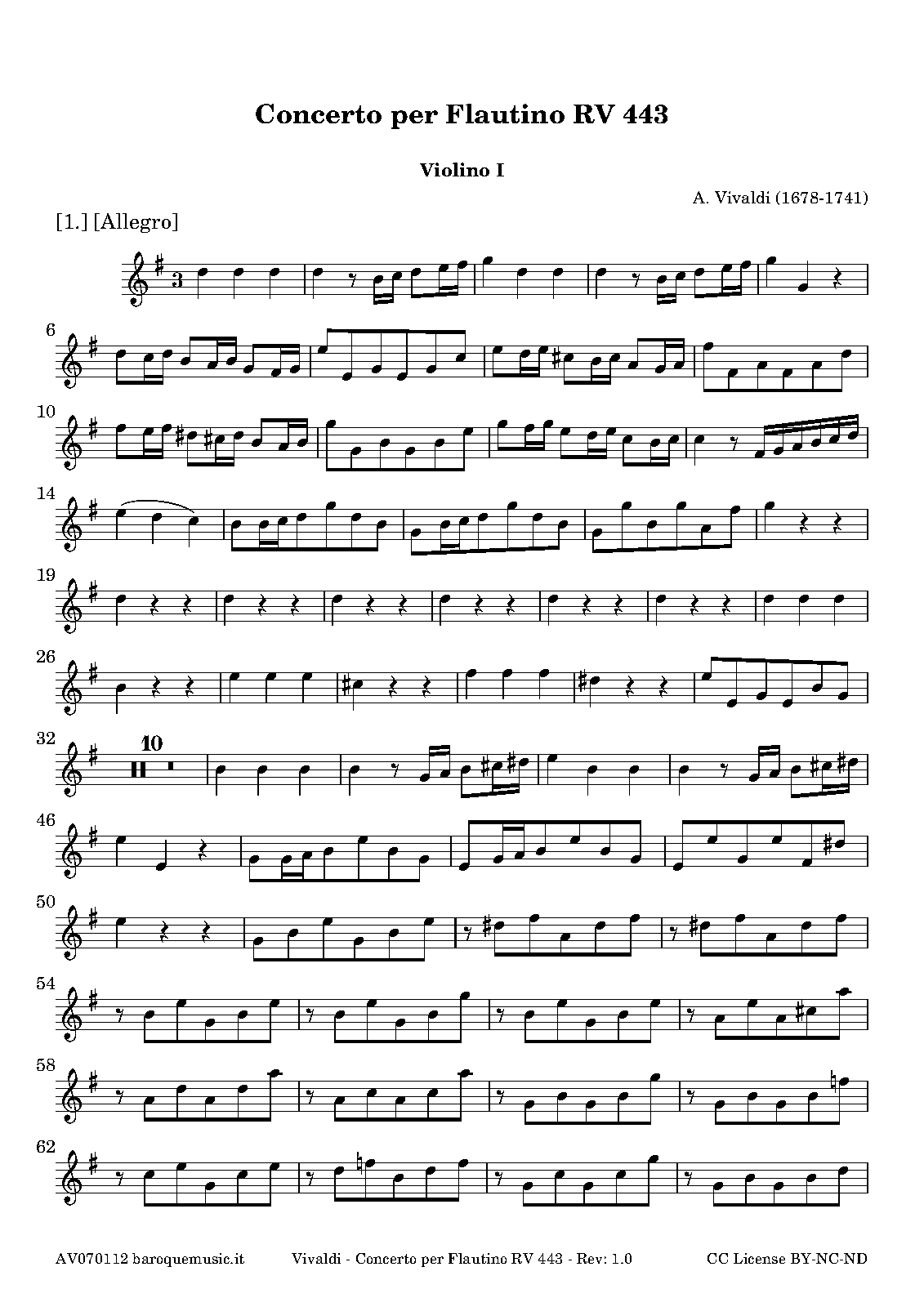 Alternative. Title Concerto per Flautino : Gl'istromti trasportati alla 4a