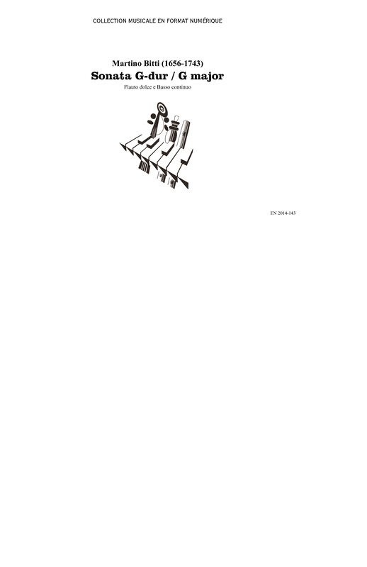 According to Michael Talbot (in Martino Bitti’s Twenty-four Sonatas for Violin and Basso continuo: an Introduction, p.9-10), this was initially published by Walsh and Hare in 1711, in a set of 8 sonatas, but because of a misprint on the title page that implied they were trio sonatas, there was a quick reprint in 1712, with the title Solo’s for a Flute, with a through Bass for the Harpsicord or Bass Violin. (Flute in this case is flauto dolce.)