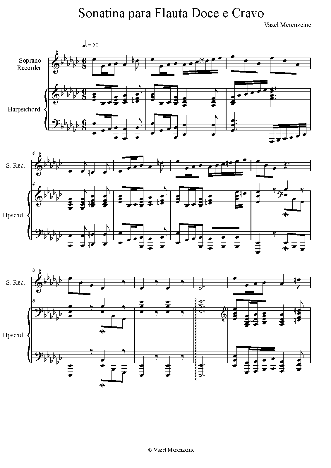 | Work Title | Sonatina para Flauta Doce e Cravo No.1 |