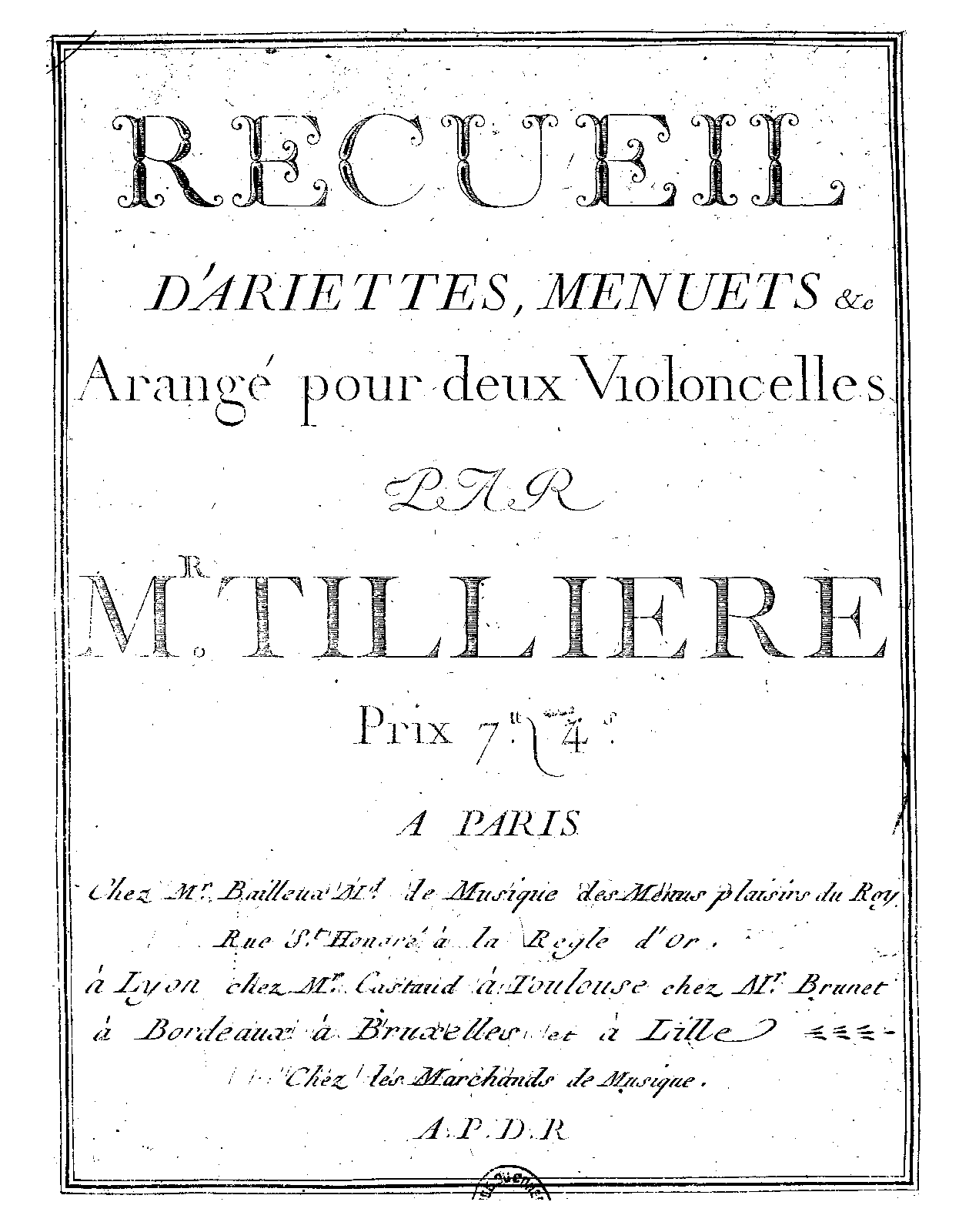 | Alternative. Title | Recueil d'ariettes, menuets etc arangé pour deux violoncelles... Collection of airs and minuets for 2 Cellos |
