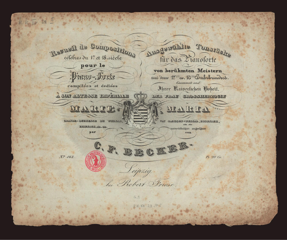 Recueil de Compositions célèbres du 17 et 18 siècle pour le Piano-Forte ; Ausgewahlte Tonstucke fur das Pianoforte von beruhmten Meistern aus dem 17ten u. 18ten Jahrhundert