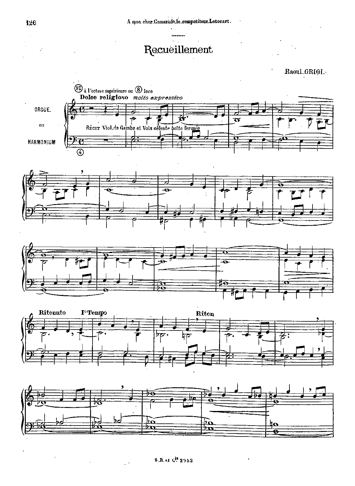 | Dedication | À mon cher Camarade le compositeur Henri Letocart |