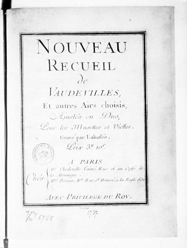 | Work Title | Recueils de vaudevilles, menuets, contredanses et autres airs choisis pour la musette |