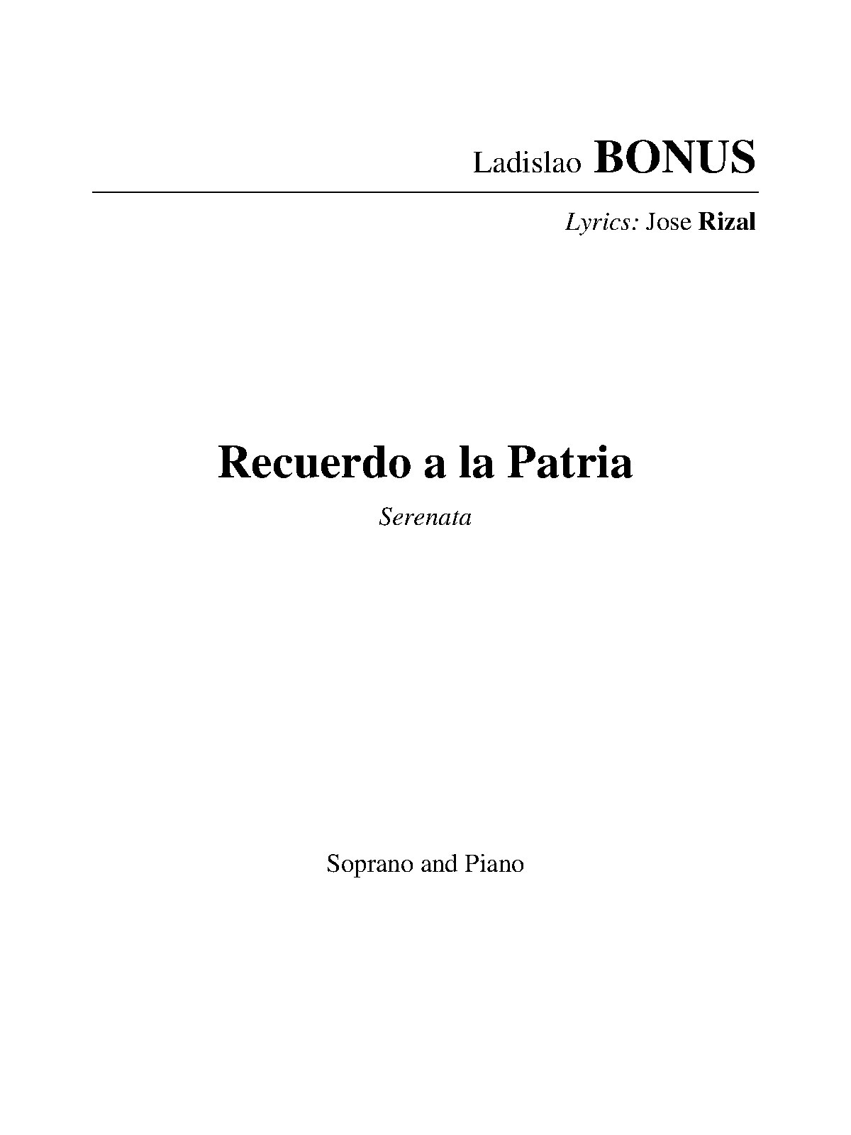 | Extra Information | Spanish Magazine "Cultura filipina" dates this work to 1900, but it was likely composed earlier than that as other sources say Rizal himself requested the composer to set the poem into music. |