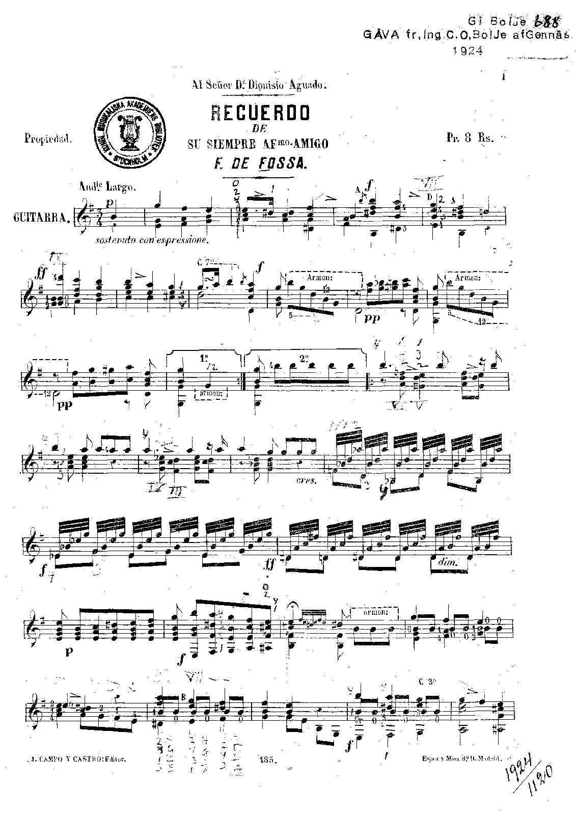 | Work Title | Recuerdo de su siempre Afmo. amigo |